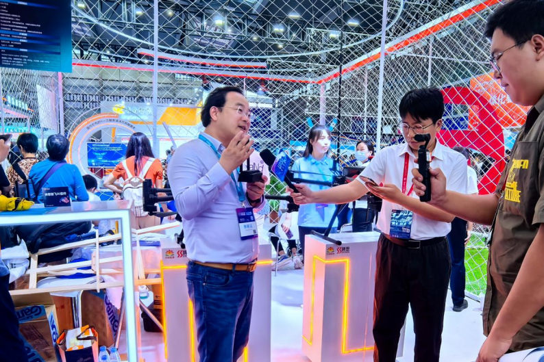展會(huì)現(xiàn)場(chǎng),設(shè)置“智能體智闖旋關(guān)”與“智能體智探幻陣”游戲,讓觀眾體驗(yàn)“具身智能、空間智能、自主決策”及“空地協(xié)同多智能體聯(lián)動(dòng)”全自主無(wú)人系統(tǒng)的強(qiáng)大能力。在“智能體智闖旋關(guān)”游戲環(huán)節(jié),4位持有民航局頒發(fā)的小型多旋翼無(wú)人機(jī)超視距駕駛員證書(shū)的專業(yè)選手與“神思智飛”展開(kāi)精彩對(duì)決。最終“神思智飛”順利完成比賽,專業(yè)選手均未能完成挑戰(zhàn)任務(wù),在這場(chǎng)人工操控與AI技術(shù)的對(duì)弈中,“神思智飛”大獲全勝。