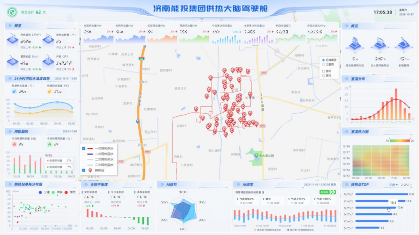 為助力節(jié)能減排、促進(jìn)綠色發(fā)展,針對(duì)北方供熱管網(wǎng)大、滯后長(zhǎng)、難精調(diào)、能耗高等痛點(diǎn),神思電子以熱力“源-網(wǎng)-端”全過程中產(chǎn)生的海量數(shù)據(jù)為基礎(chǔ),研發(fā)核心數(shù)據(jù)體檢、負(fù)荷預(yù)測(cè)、均衡調(diào)控等算法,構(gòu)建智慧供熱大腦平臺(tái),通過高精度仿真計(jì)算、資源治理和優(yōu)化、能源合理高效輸配等形成有效的生產(chǎn)調(diào)度決策。在濟(jì)南市商河縣開展應(yīng)用示范,實(shí)現(xiàn)供熱智慧監(jiān)管、智慧運(yùn)營(yíng)、智慧調(diào)控,構(gòu)建綠色高效供熱系統(tǒng)。