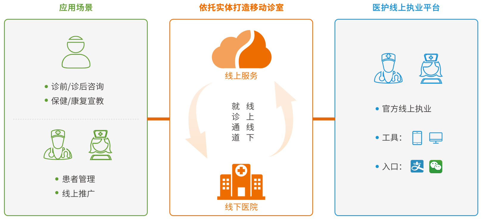 網(wǎng)絡(luò)門(mén)診:線上咨詢(xún)、復(fù)合診室、病區(qū)診室、聯(lián)合門(mén)診